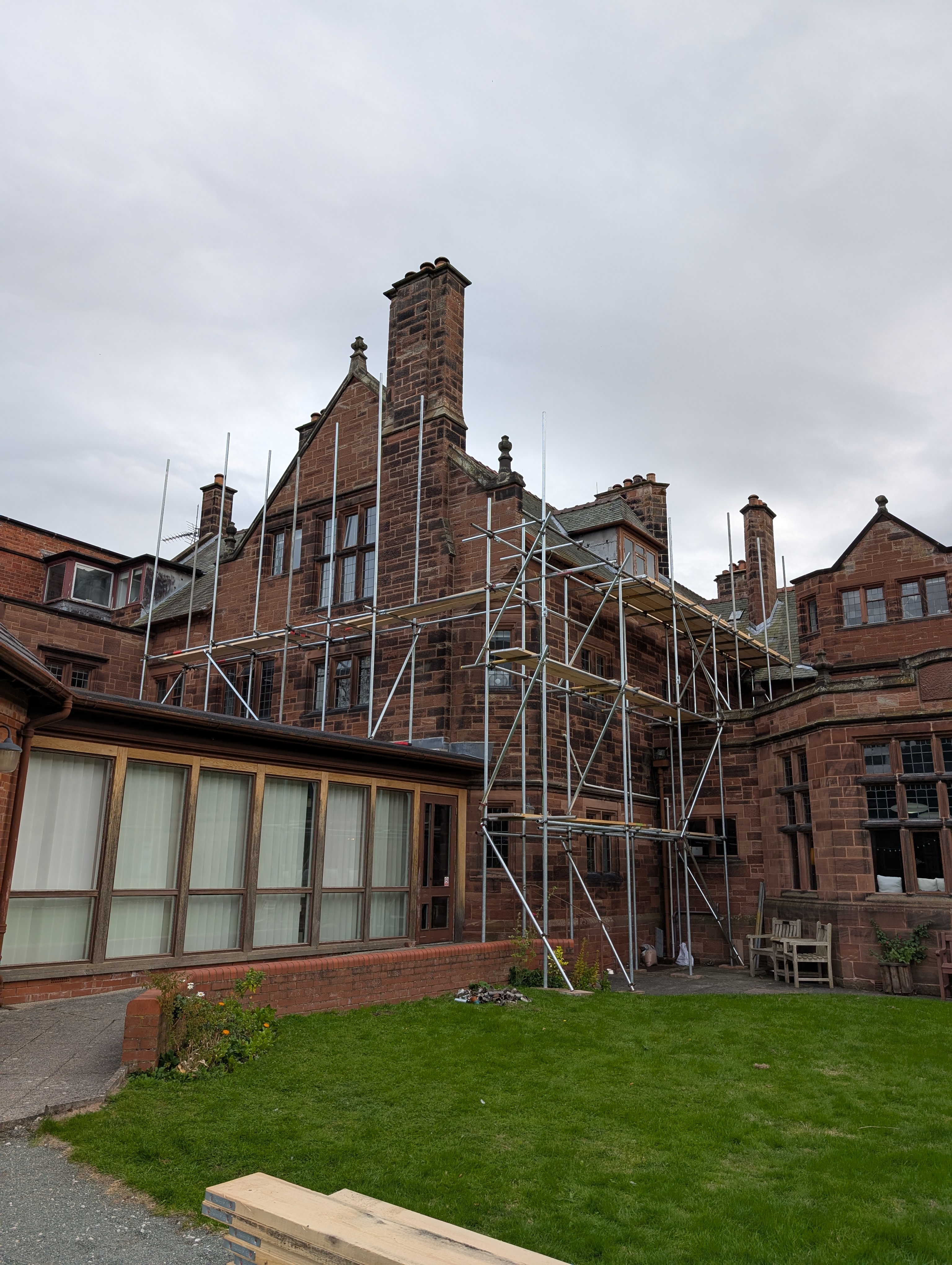 We’re pleased to share that roof repair works at Gladstone Library officially began on site this week. The project marks an important step in preserving and maintaining this historic building. Scaffolding has been erected around the Library as work begins on the chimneys and roof.