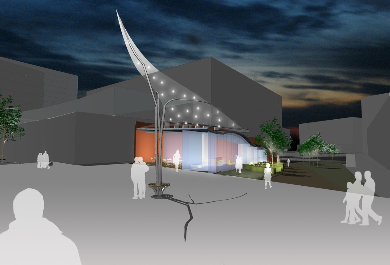The café has once again become an important part of urban life. Our proposed design is created from a series of elements. The wall, a backdrop of Corten is reminiscent of the maritime history of Liverpool. The wall depicts the landmarks, life and layers of the city. The wave wall is cast from high insulating concrete, providing a thermal mass to maintain stable internal temperatures, and the outer face is clad with Corten steel.