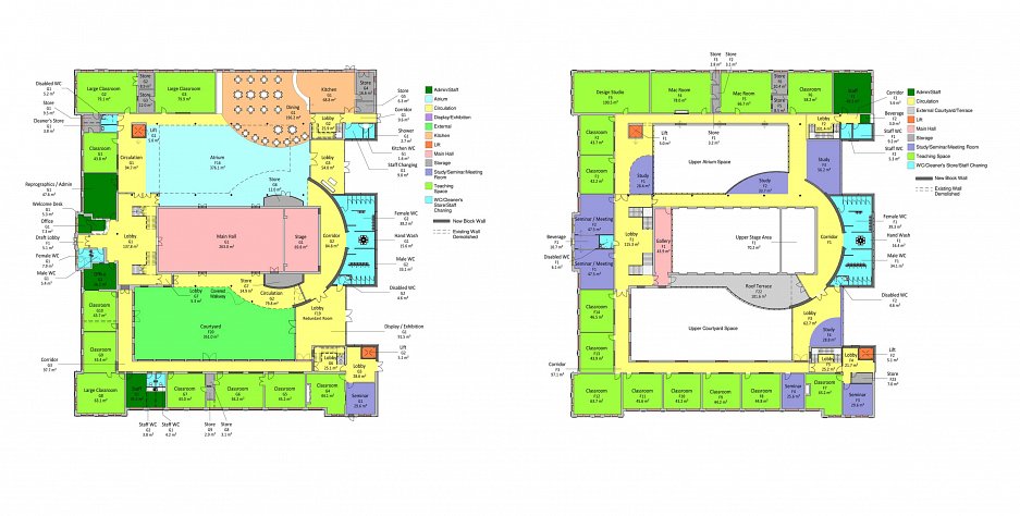 The Phase 1 proposals look to strip back the building to the original shell, refurbishing the original features whilst providing modern day teaching environments that give flexibility in teaching, with clear departmental spatial arrangements and opportunities to set aside ‘front of house’ spaces for community use. Some new additions are proposed to provide additional floor space, designed to be different and distinct from the existing character.