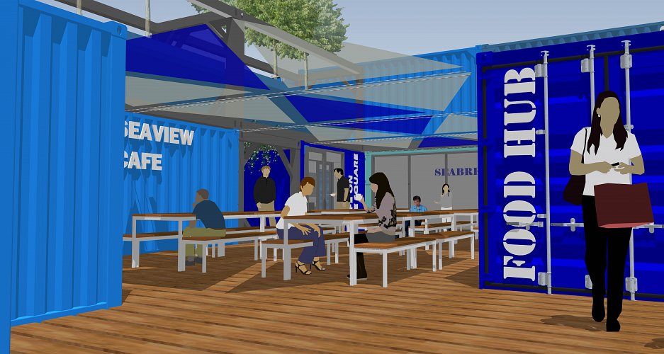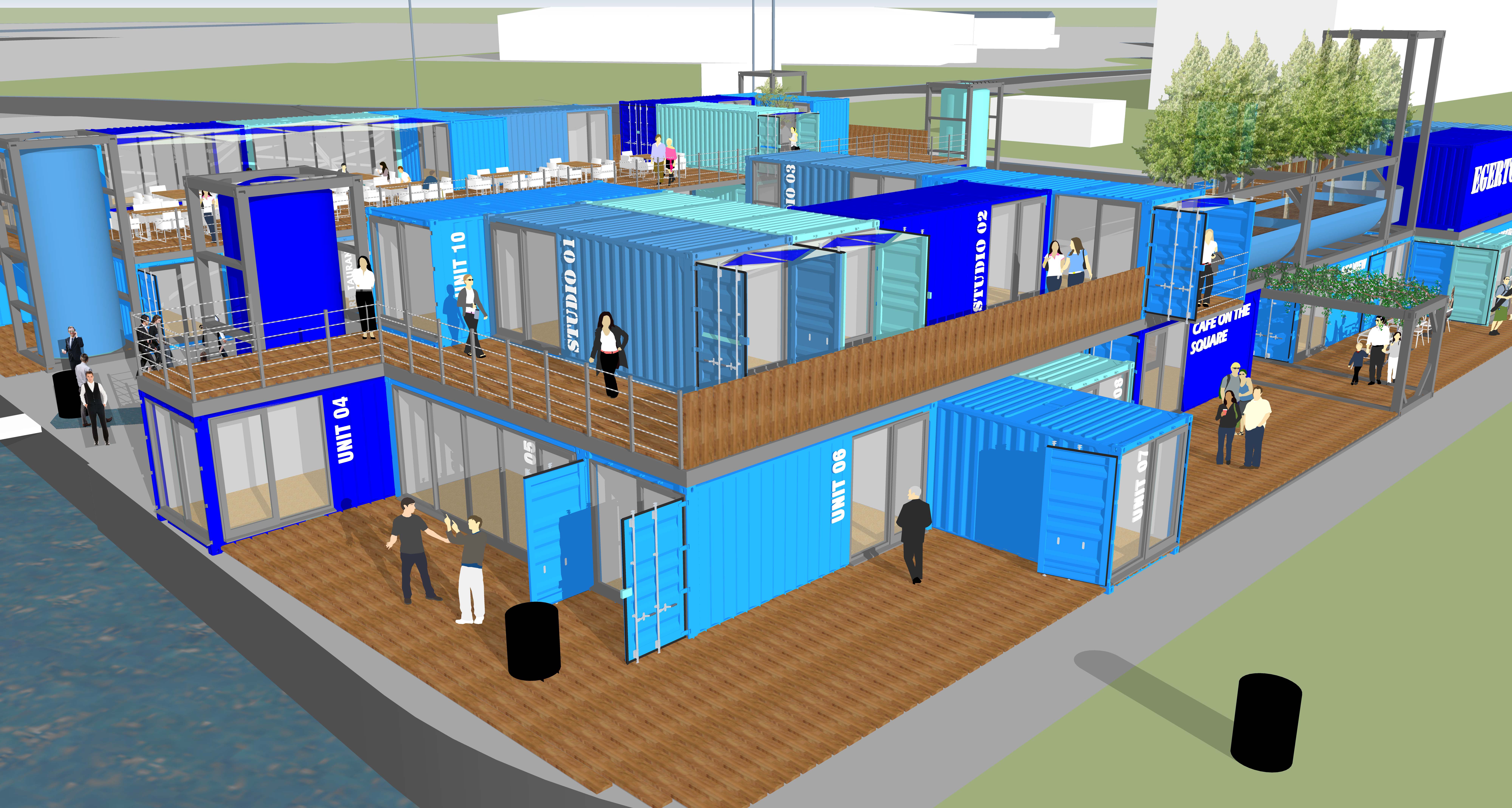Shelter is created in small external courtyards and outdoor spaces that fringe the main square and provide shelter and cover from weather. The upper decks, have views into the square and out over the wider context, with shelter from perimeter containers. Retractable canopies would be provided over some of the outdoor spaces and these will be formed from roller blinds that replicate the appearance and basic operation of yacht sails. The whole development will use a range of upcycled and re-purposed components providing a interesting and animated space we believe would have the potential to draw people in, to experience and enjoy dockland in a whole new way.