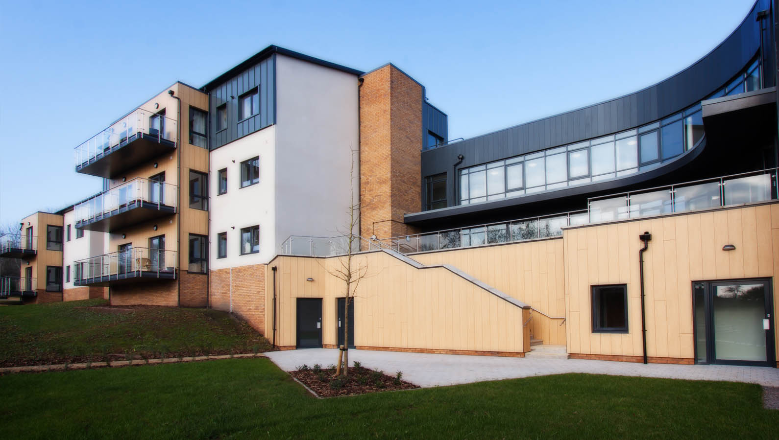 A neutral palette of materials has been selected to establish a contemporary design whilst helping the building to fit into the surrounding environment. The materiality of the Community Hub differs from the accommodation blocks, with large expanses of glazing and an element of colour, providing a focal point to the development. The hub building has a feeling of transparency and inclusiveness, and will provide a community resource which can be enjoyed by all.