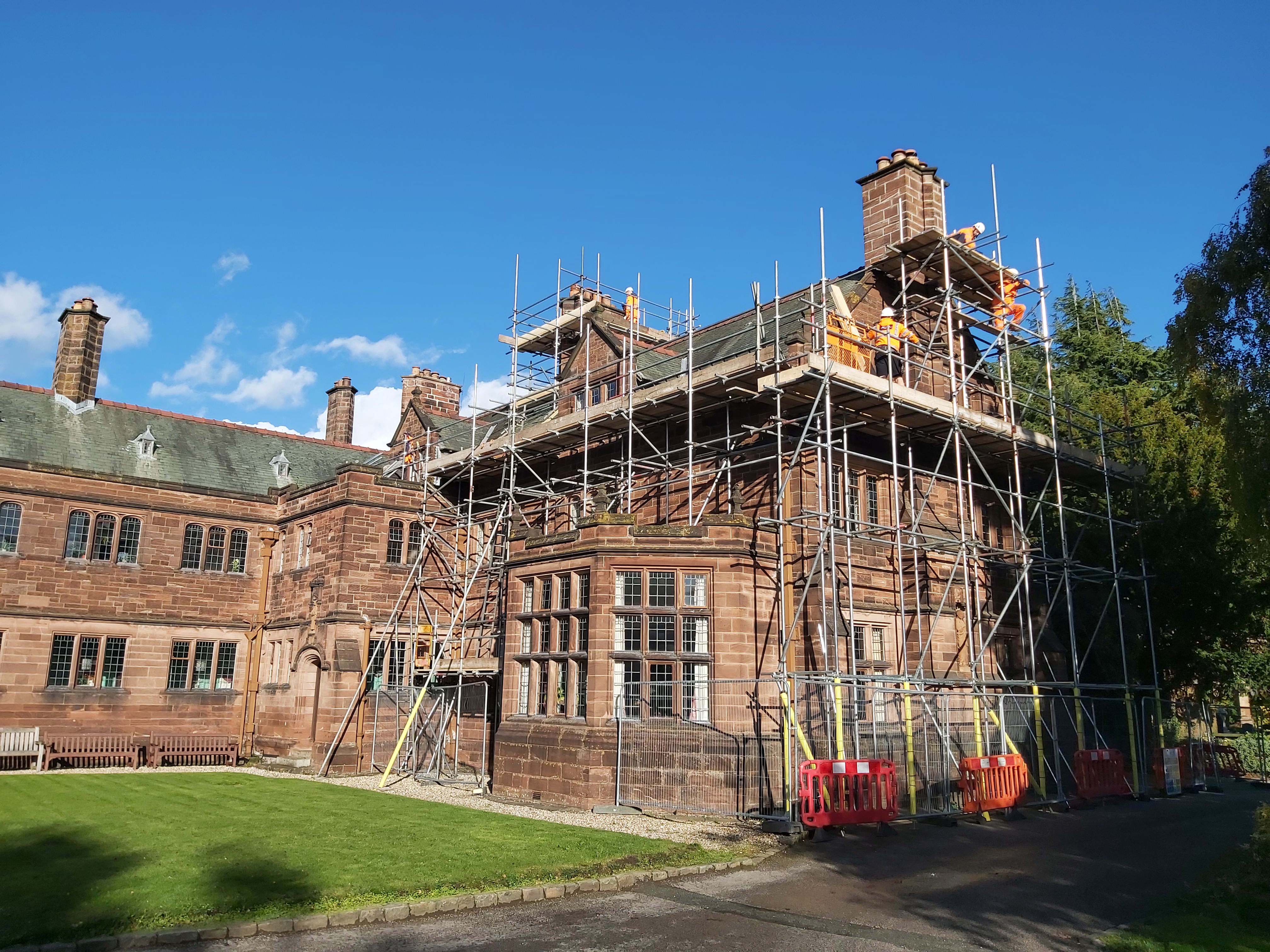 We’re pleased to share that roof repair works at Gladstone Library officially began on site this week. The project marks an important step in preserving and maintaining this historic building. Scaffolding has been erected around the Library as work begins on the chimneys and roof.