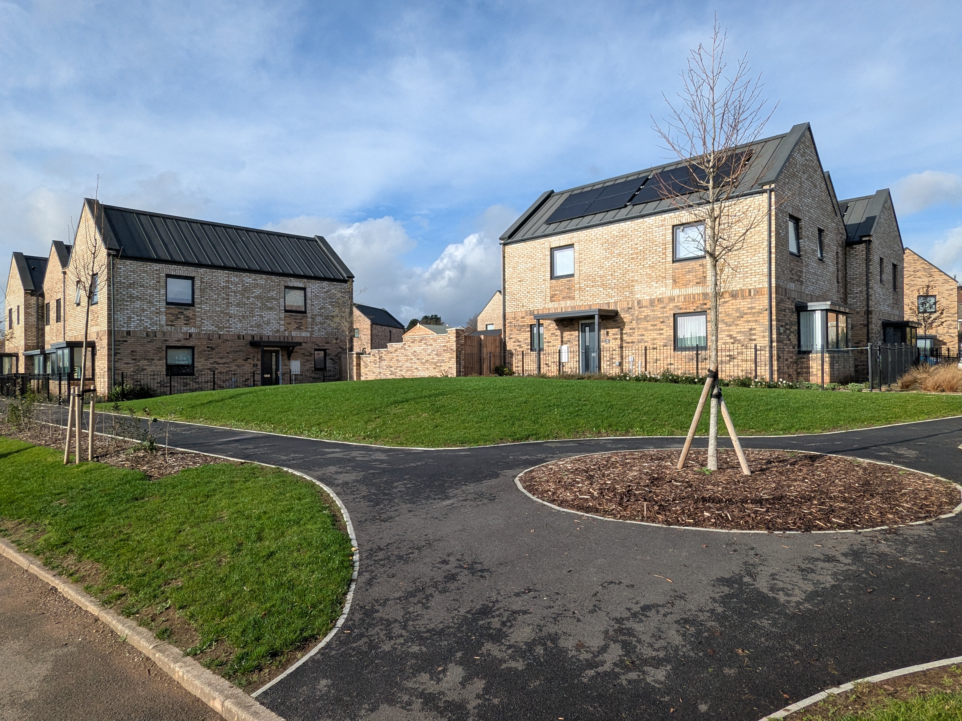 This new development of thirty nine affordable homes is located in the centre of Alway, Newport, on the site of the former Ladyhill Centre & Sevenstiles Public House. A high quality, cohesive and sustainable community, the development provides a natural infill to the residential development of Alway, and is led by strong green infrastructure & placemaking ideologies. Landscaping enhancements include rain gardens, pocket parks and grasscrete parking. The highly sustainable scheme enables ‘low carbon living’, with combustion free homes that embrace cutting-edge energy and drainage technology.